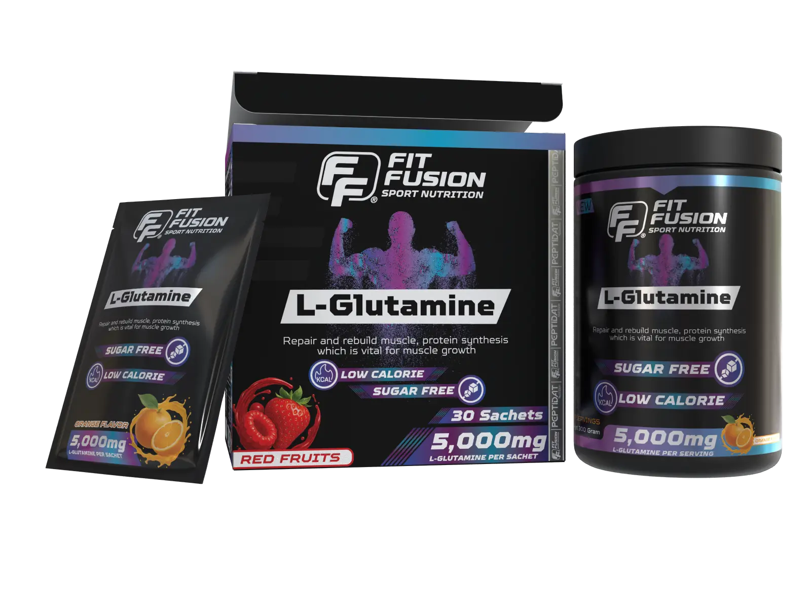 Pure L-Glutamine for recovery, gut health, and nitrogen balance. Zero sugar, zero fat, ~20 kcal, instant dissolving.